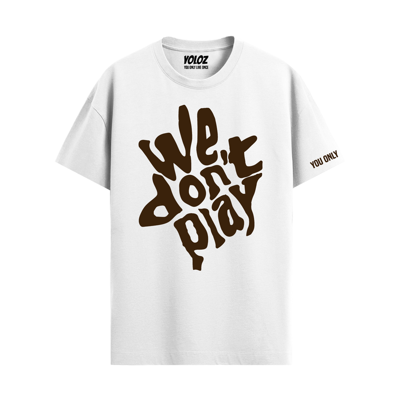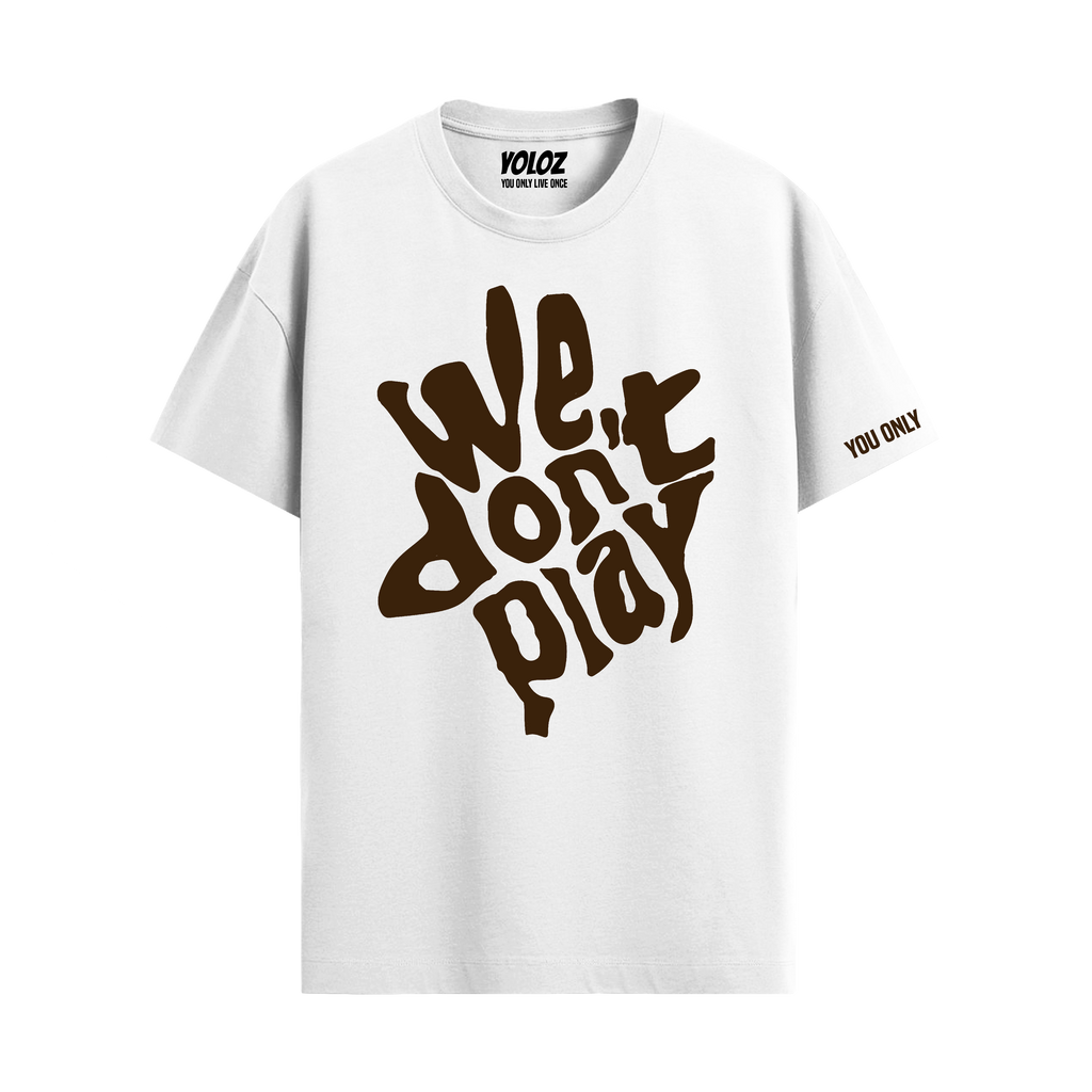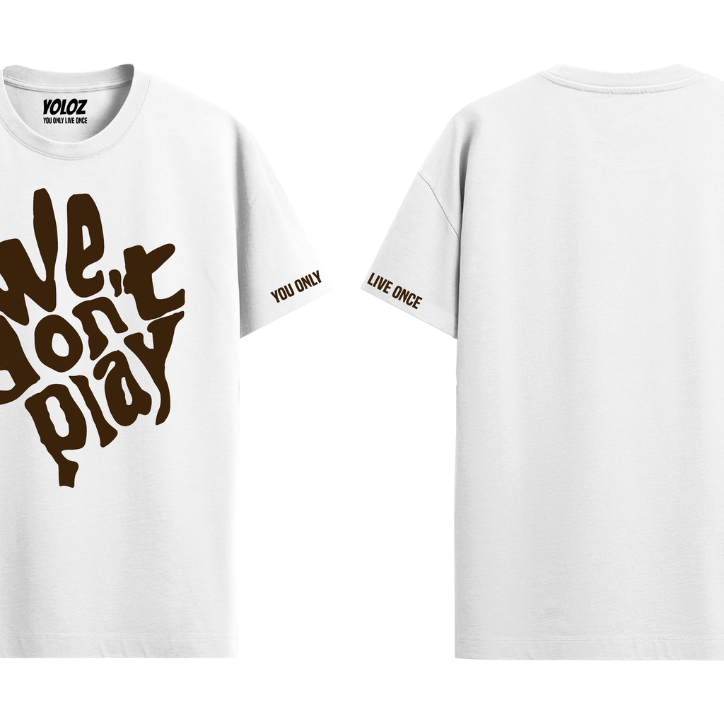 Clean, bold, and effortlessly stylish, the We Don't Play white regular t-shirt is designed for those who embrace confidence in their style. Crafted from 100% Terry Cotton, this tee offers a lightweight and breathable feel, making it perfect for everyday wear. The crisp white base serves as the perfect backdrop for the striking "We Don't Play" statement, ensuring a standout look in any setting.